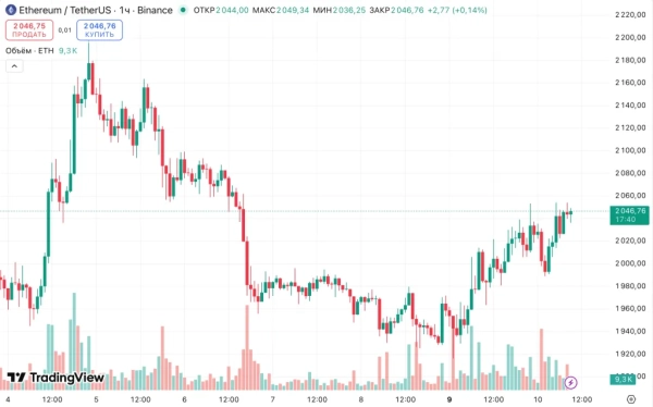 Часовий графік ETH/ $USDT біржі Binance. Джерело: TradingView.