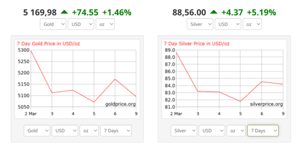 На початку конфлікту золото підтвердило статус класичного захисного активу. 2 березня спотова ціна піднімалася до $5297 за унцію, а ф'ючерси закрилися ще вищою — близько $5312. На момент написання котирування скоригувалися до $5170.