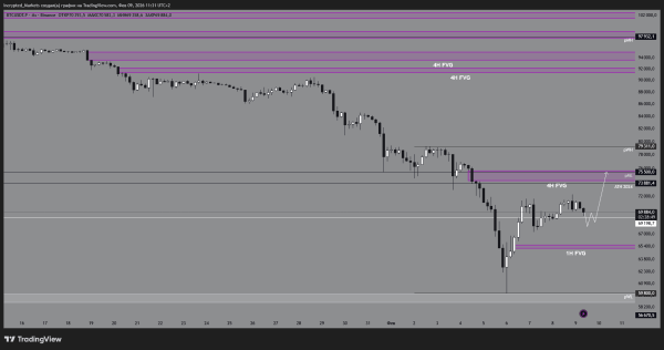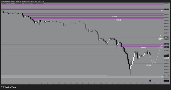 Мета: «магніт» знизу – зона $70 000 та історичні рівні підтримки. У цьому варіанті не очікуємо відскоків – графік буде просто “важким”.