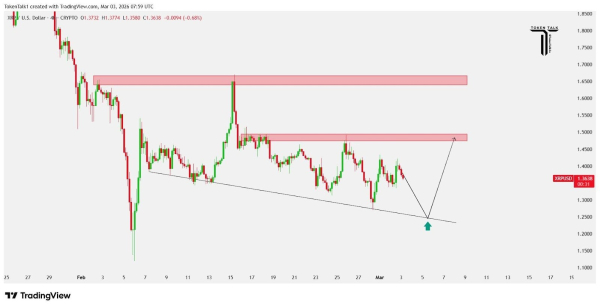 Зростання активності співпало зі зростанням ціни. $XRP виріс приблизно на 14% за 48 годин і пробився вище за $1.60. На момент публікації ціна трохи знизилася, торгуючись на рівні $1,54 після зростання на 3,6% за останній день. Цей сплеск збільшив тижневе зростання $XRP до 11%.