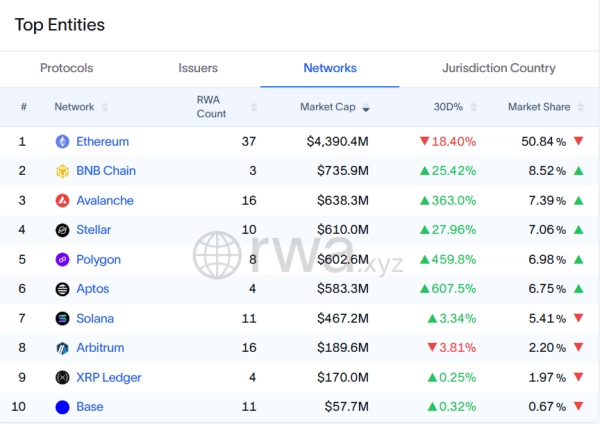 За інформацією RWA.xyz, до кінця 3 кварталу Avalanche став третім за величиною блокчейном за обсягом токенізованих державних цінних паперів США ($638 млн), поступаючись лише BNB Chain та Ethereum.