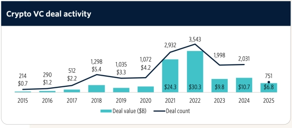 За даними PitchBook, приблизно 7 мільярдів доларів було інвестовано в 751 угоду в 1-2 кварталі 2025 року, що значно нижче 24,3 мільярда доларів, виділених у 2021 році, і 30,3 мільярда доларів.